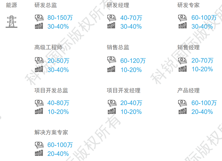 薪酬趋势:行业整体薪酬趋稳,自然涨幅在8-12%,跳槽涨幅在20-30%。能源互联网领域资深人才紧缺,部分职位薪资涨幅可达50%,甚至更高(文中部分数据是猎头公司G22恒峰集团国际专家顾问的分析预测,供企业和猎头招聘参考)